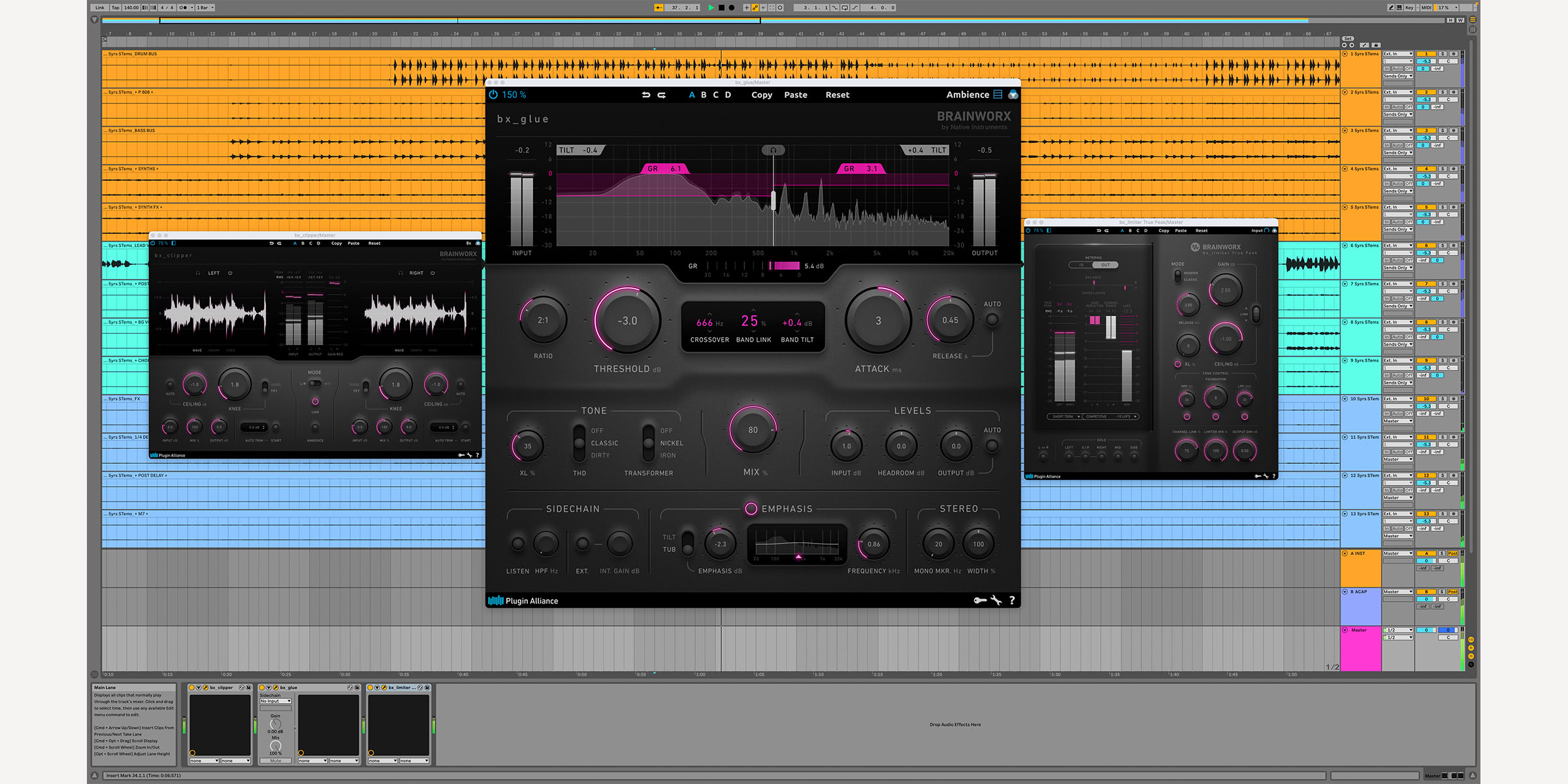 Use bx_glue’s depth of features and tonal flexibility to apply vintage glue with precision and enhance individual tracks. This works especially well on vocals, guitars, bass, drums. Any group or track that needs more balance or mojo will benefit from the precision of bx_glue.